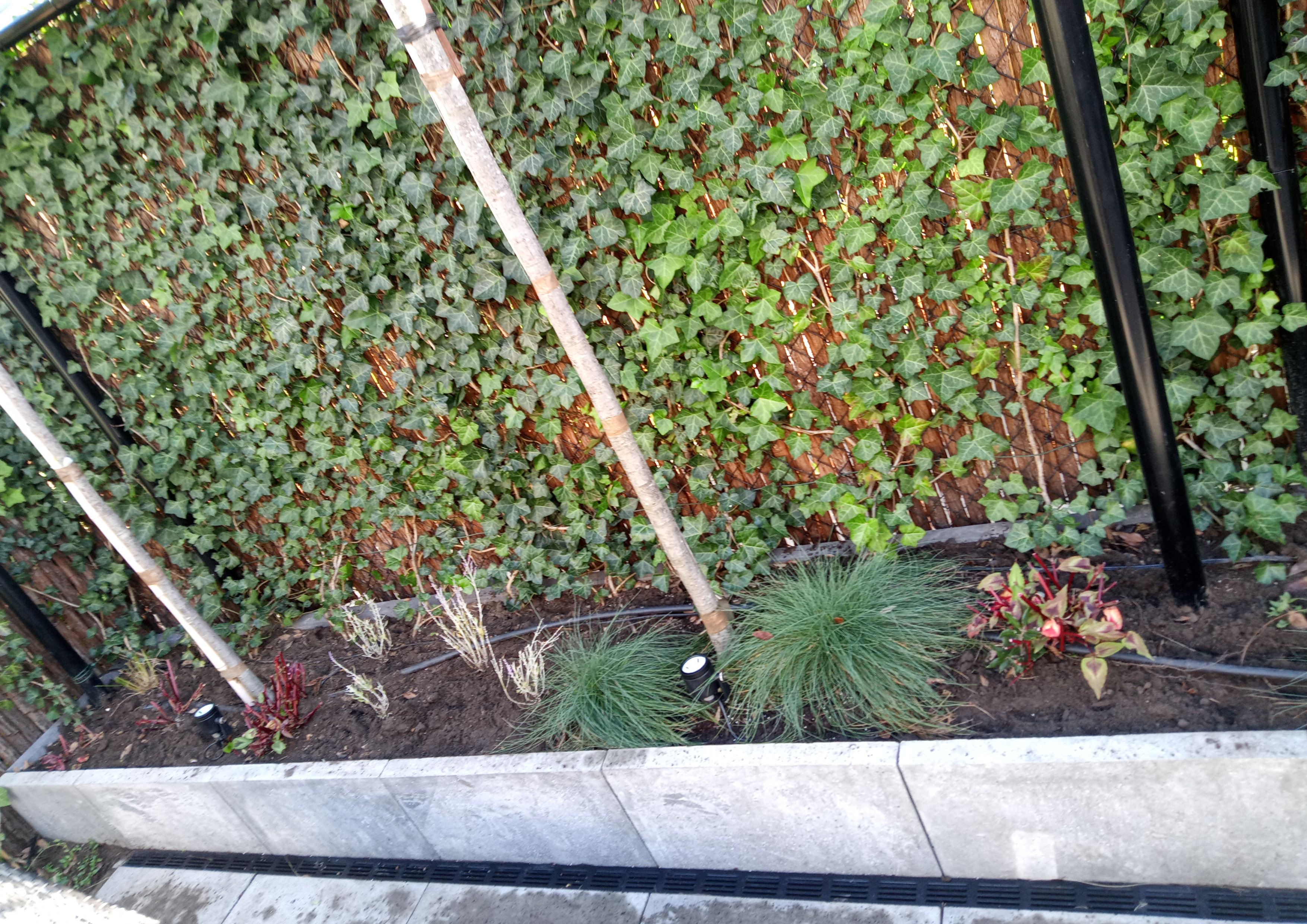 Voor de beplanting is gekozen voor Toscaanse Jasmijn – een prachtige, wintergroene klimplant die vanaf mei bloeit met witte bloemen die heerlijk naar vanille ruiken.