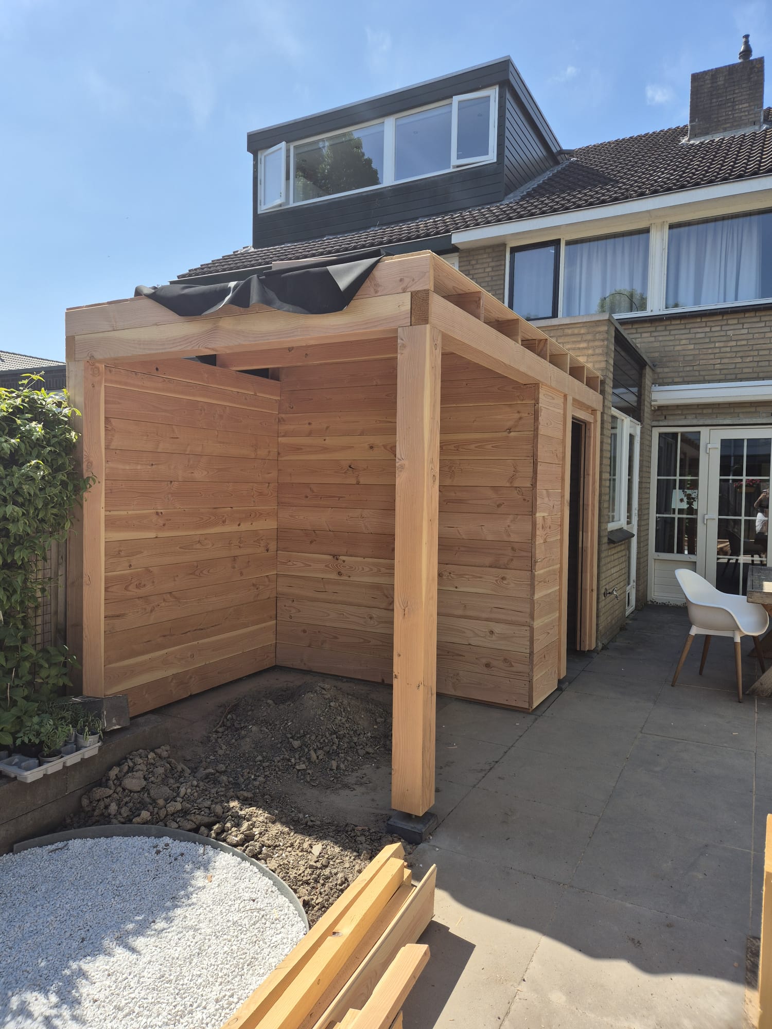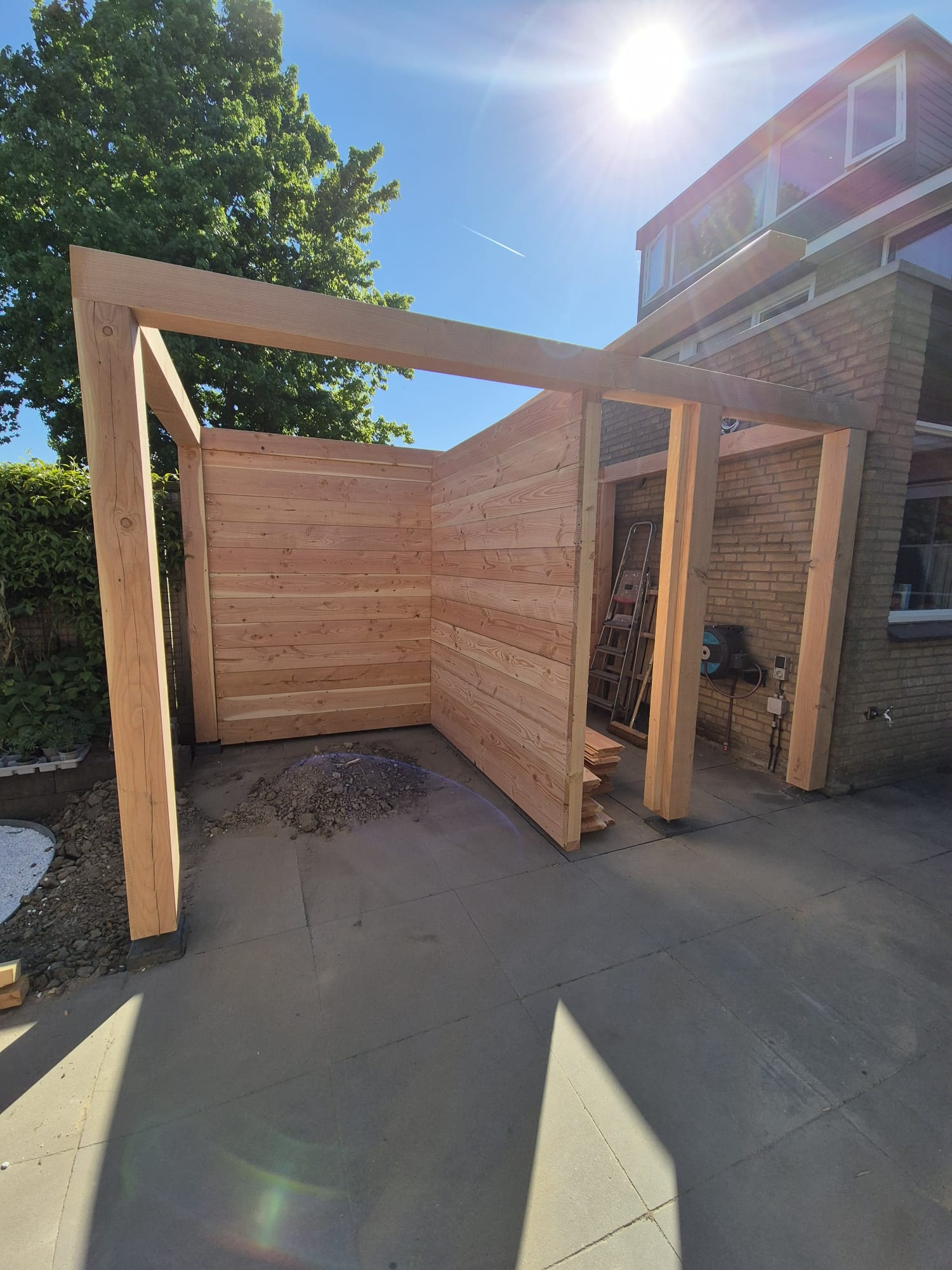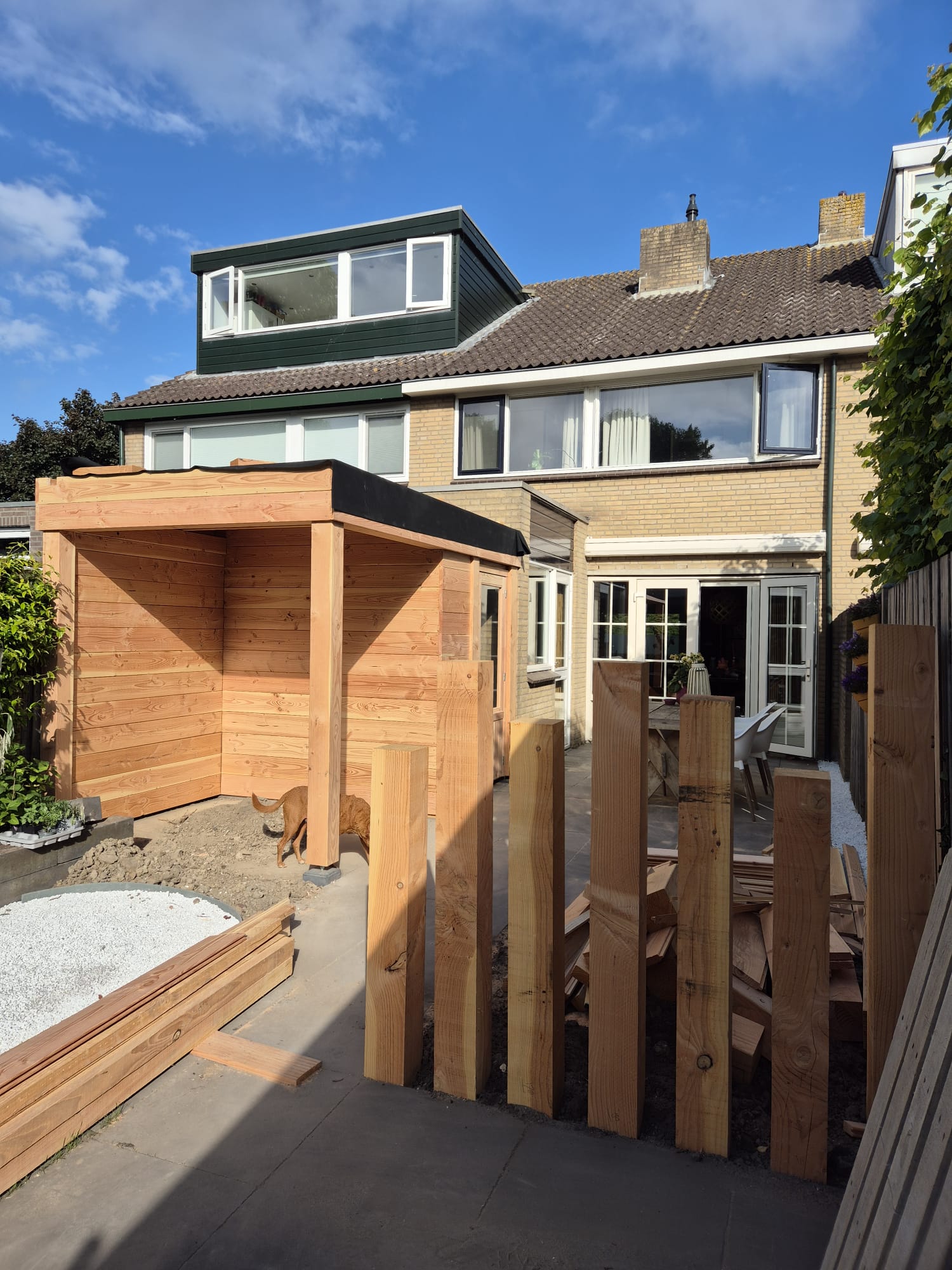In samenwerking met de klant heb ik een stijlvolle gevelbekleding gerealiseerd die zowel functioneel als esthetisch is. Voor het raamwerk is gewerkt met geïmpregneerde ribben en planken, stelschroeven en gaas, wat zorgt voor een stevig en duurzaam fundament.