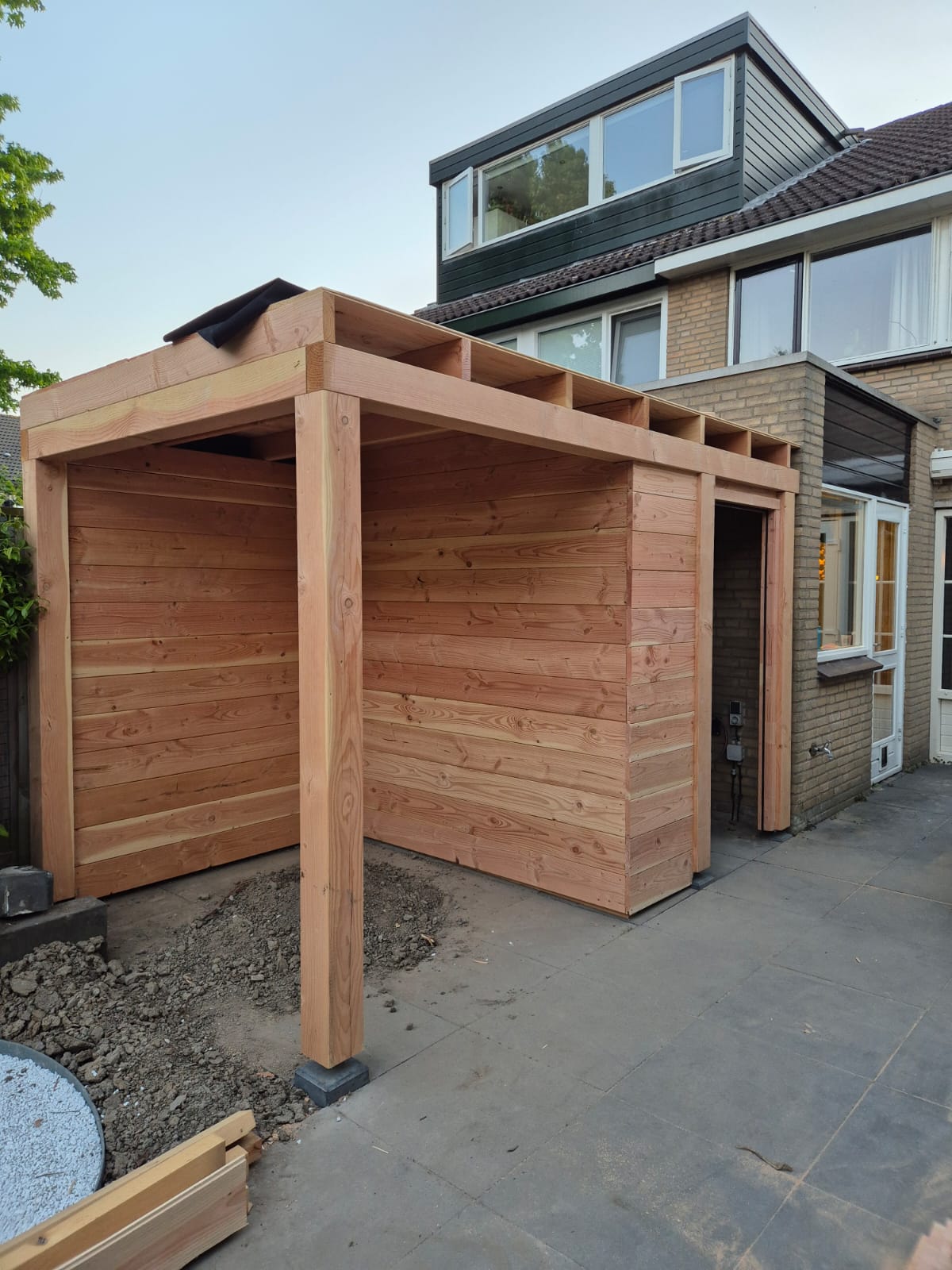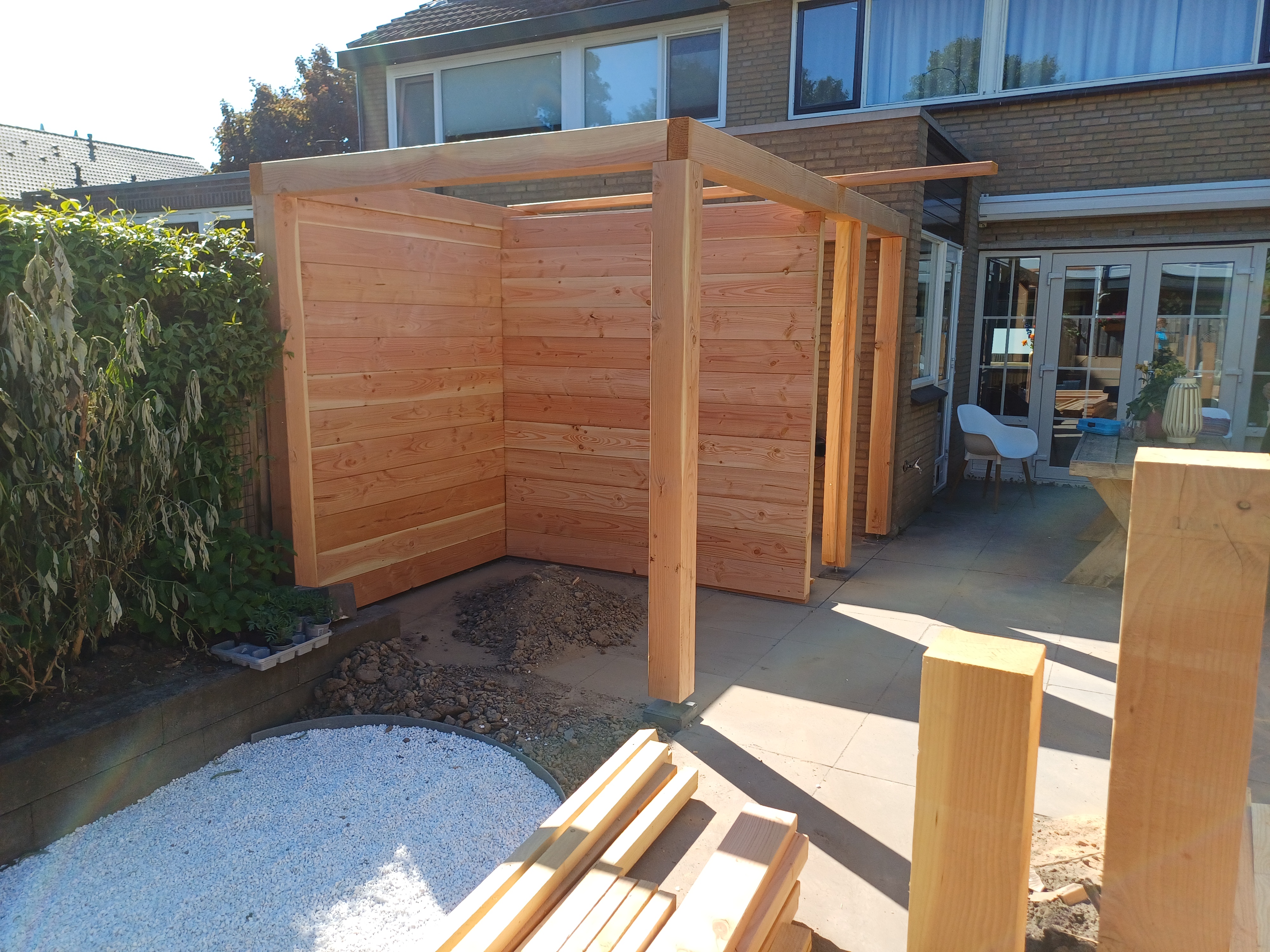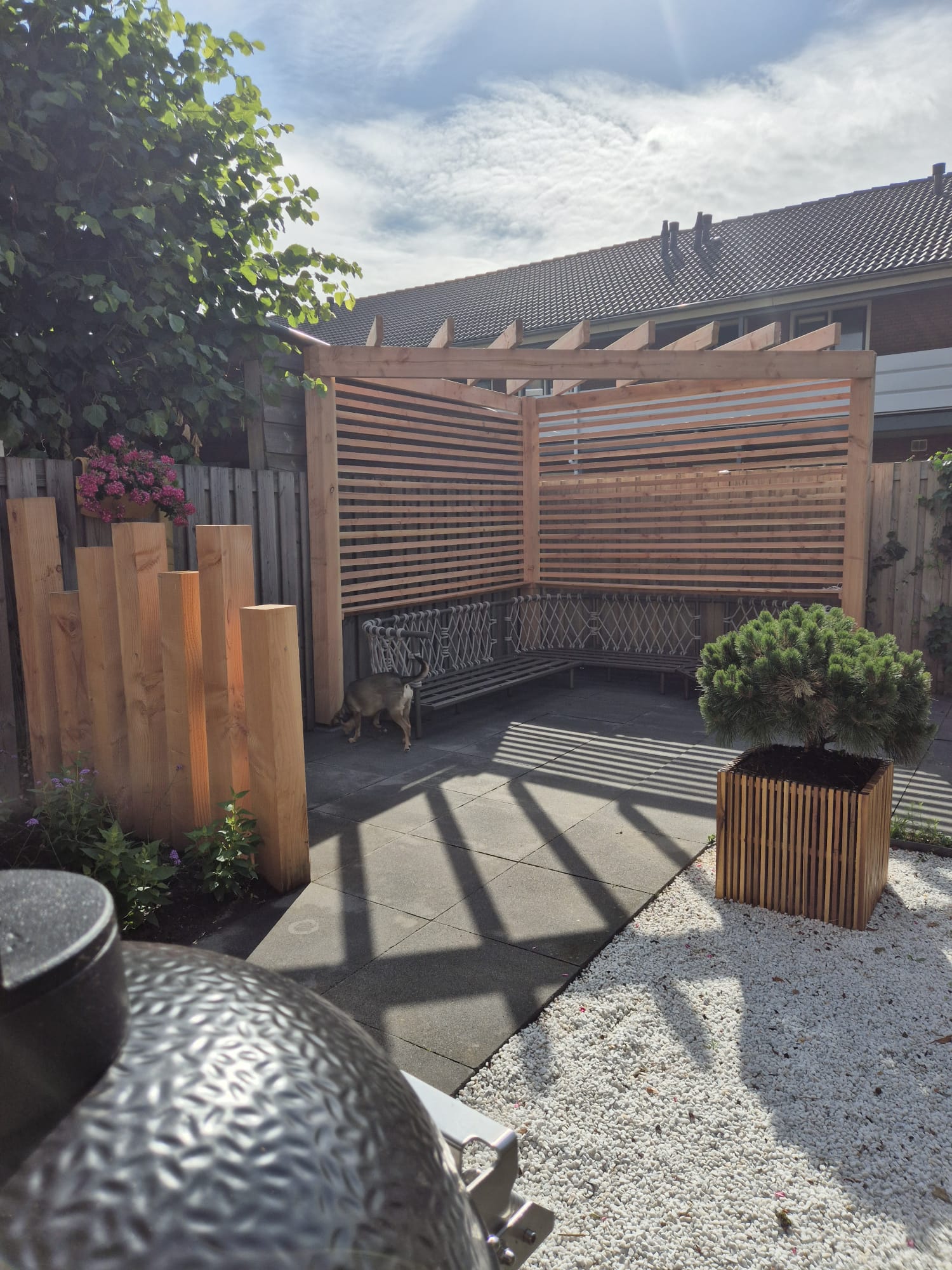 In samenwerking met de klant heb ik een stijlvolle gevelbekleding gerealiseerd die zowel functioneel als esthetisch is. Voor het raamwerk is gewerkt met geïmpregneerde ribben en planken, stelschroeven en gaas, wat zorgt voor een stevig en duurzaam fundament.