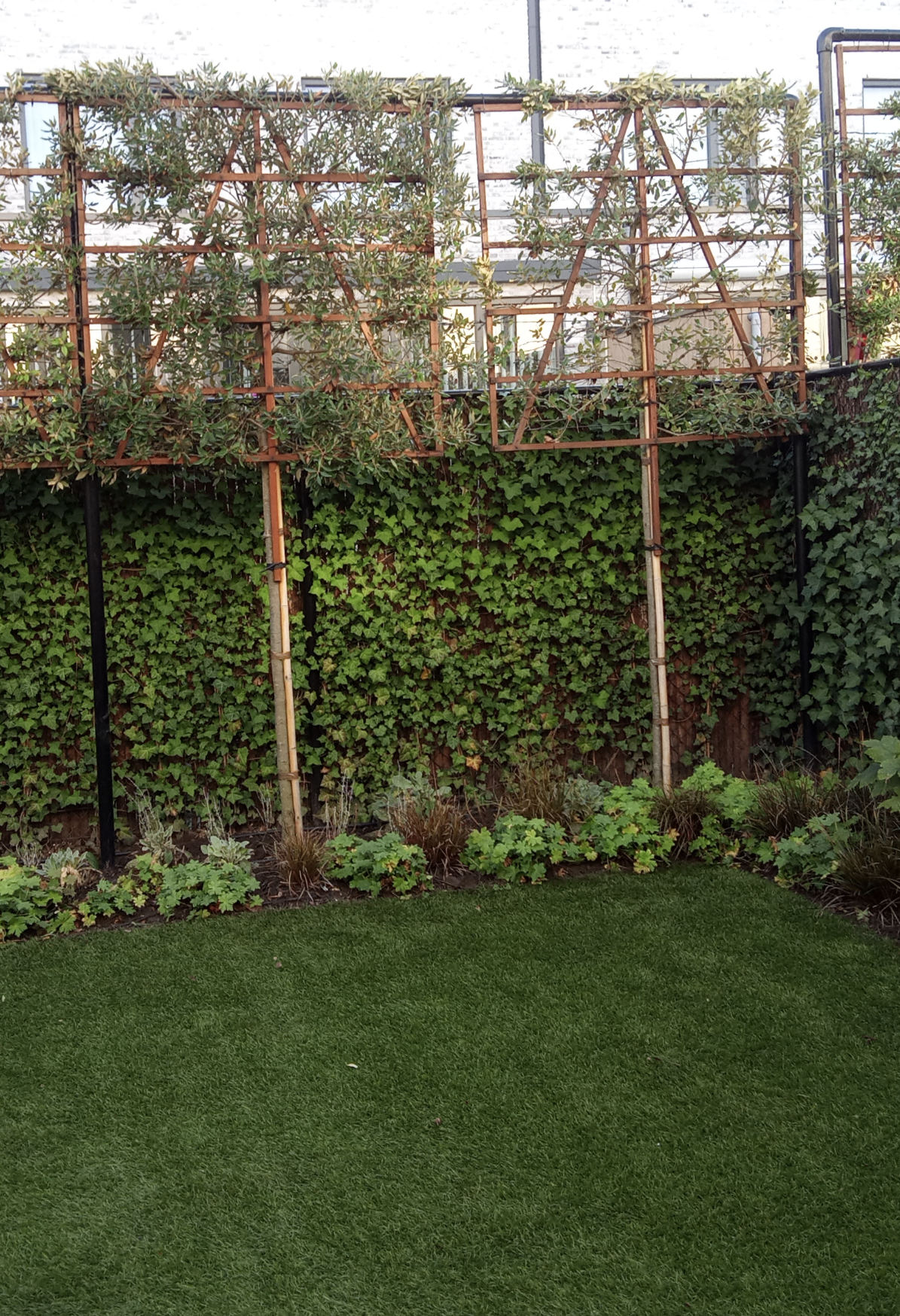 Even geduld en dan is ook deze wand mooi groen bekleed.